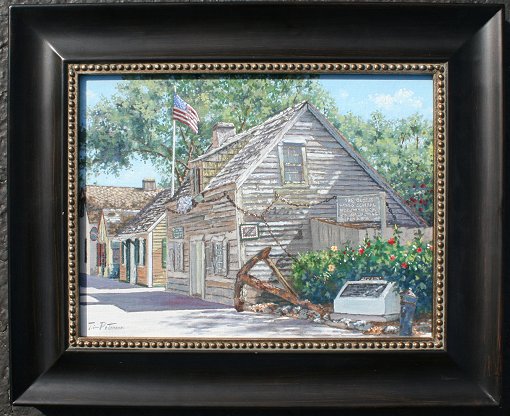 PETERSON, Tim, (American, 20th century): Oldest Schoolhouse, St. Augustine, Florida. OIL/Linen over masonite, 12'' x 16'', signed, framed, 18'' x 20 1/2''.