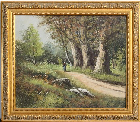 BARBIZON STYLE LANDSCAPE PAINTING PELLETIER?: Figure in Landscape, OIL/Canvas, 18'' x 21 1/2'', contemporary framing, 23'' x 26 1/2'', no visible signature. Est. $300/500**