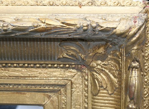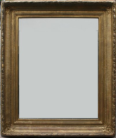 19TH CENTURY DEEP DISH ACANTHUS LEAF MOTIF GILDED GESSO FRAME WITH INSET MIRROR: 45'' x 38'', 4 1/2'' deep, insert 34 1/2'' x 27 1/2. Minor wear. Est. $300/500**