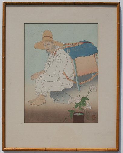 JACOULET, Paul, (French, 1902-1960): Marchand de Sel Coree, Woodblock, 15'' x 11 1/2'', signed, numbered #173/350, big margins, framed, 22 3/4'' x 18 1/2''. Est. $300/500**
