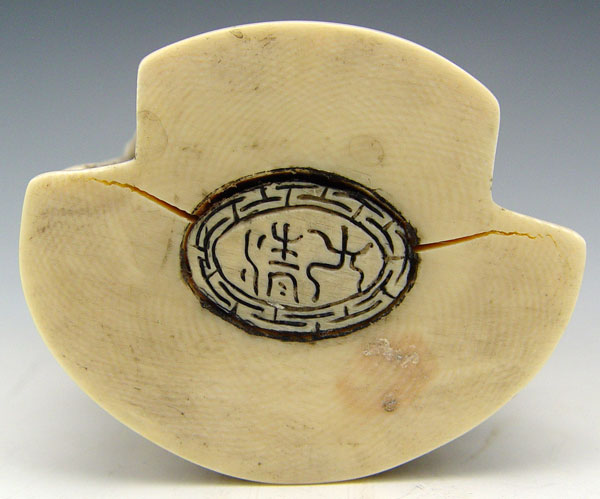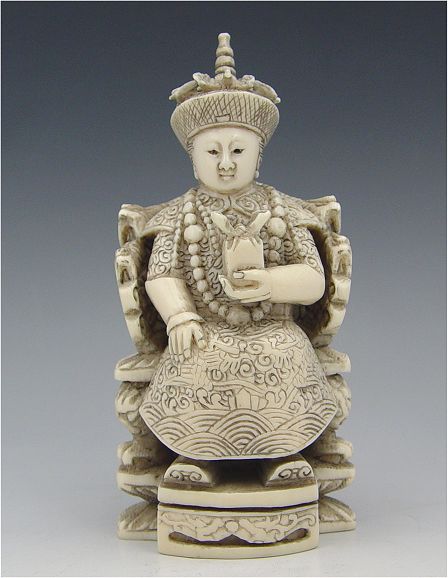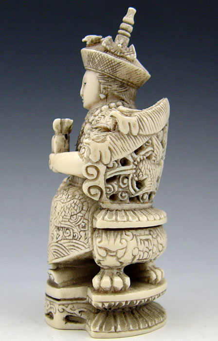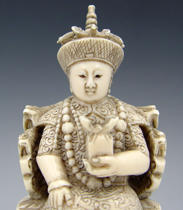 CHINESE IVORY ROYALTY SEATED WITH PRESENT: Signed in characters on base. 5 1/2'' h. x 2 3/4''.