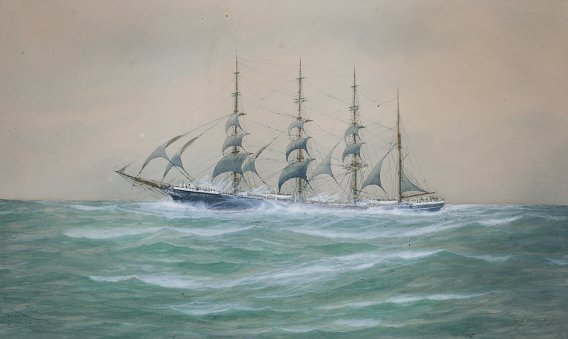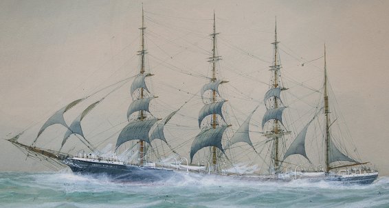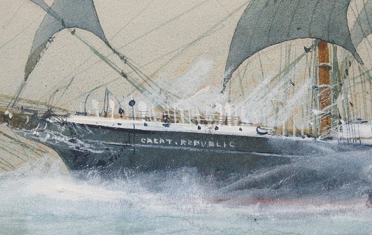 ARNOLD, J, (American, 20th C.): ''Westbound'', the clipper ''Great Republic'', Watercolor heightened with white, 15'' x 25'' sight size, signed and titled, framed, 22'' x 32''. Est. $600/900**
