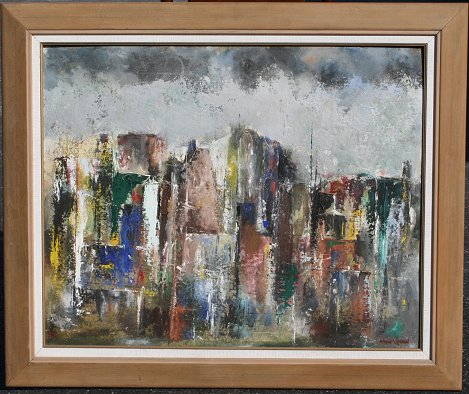 QUAN, Mun, (American, ): ''The Metropolis'', OIL/Canvas Board, 23 3/4'' x 30'', signed lower right, chop mark lower left, titled verso, wooden frame, 30 1/4'' x 36 1/4''. Est. $300/500**