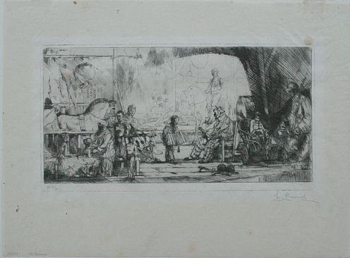 BROUET, Auguste, (French, 1872-1941): ''The Circus'', Etching and Aquatint, sight size 8'' x 13 1/2'', pencil signed lower right, #12/30 lower left, wooden frame, 15 1/4'' x 20 1/2''. Est. $200/400**