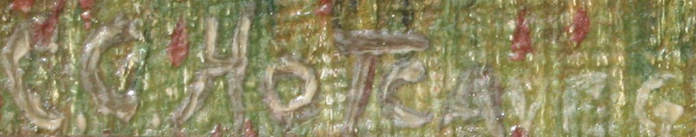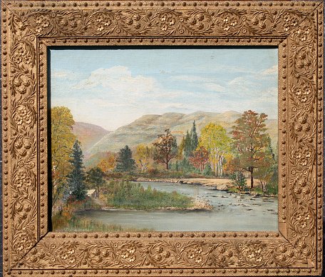 HOTCAVEG, C. C., (American, 20th C.): ''Near Renovea, PA'', naive Pennsylvania landscape, OIL/C, signed, gilded and painted gesso frame with minor wear, 14'' x 16'', titled verso. Est. $300/500**