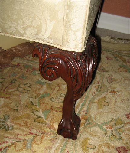 SOUTHWOOD FURNITURE CHIPPENDALE STYLE BALL AND CLAW FOOT CAMEL BACK SOFA: Fine reproduction furniture from Southwood, Hickory N.C. t Measures 36'' high x 80 1/2'' x 30''
