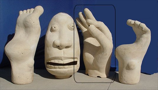 TAKASUGI, Fumio, (Japan/American, 20th C.): Large Hand from untitled #2, Clay Sculpture. Measures 50'' high x 23'' x 33''. Provenance: Leo Castelli, New York, New York Portland Museum of Art, Portland, Maine. Est. $2000/4000**