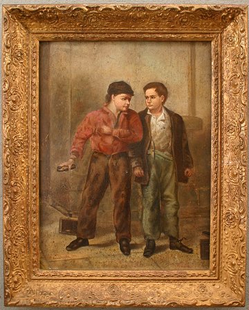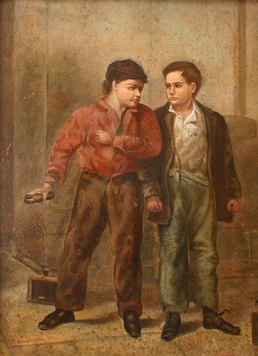 PENFOLD, Frank, (American, 1849-1920): Shoeshine Boy Turf War, O/B, 16'' x 12'', signed and dated 1866, gilded frame, 20'' x 16'', signed and dated verso. Est. $2000/4000**