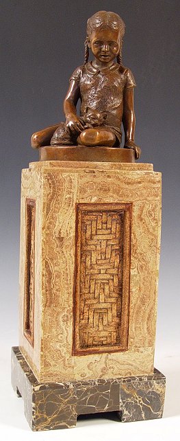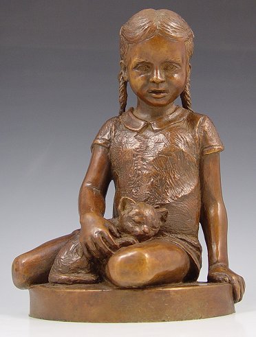 PARKS, Charles, (1922-): Child with Kitten, Bronze, 14 1/4'' h., signed, dated '74, accompanied by marble and mixed material stand, 18'' h. Est. $400/600**