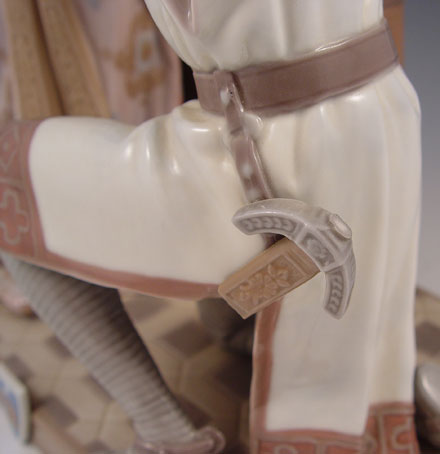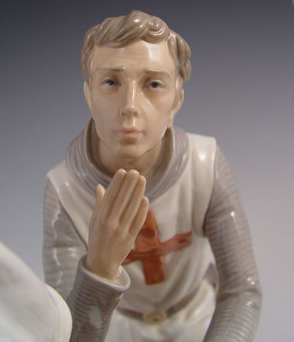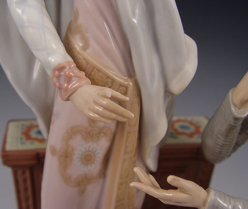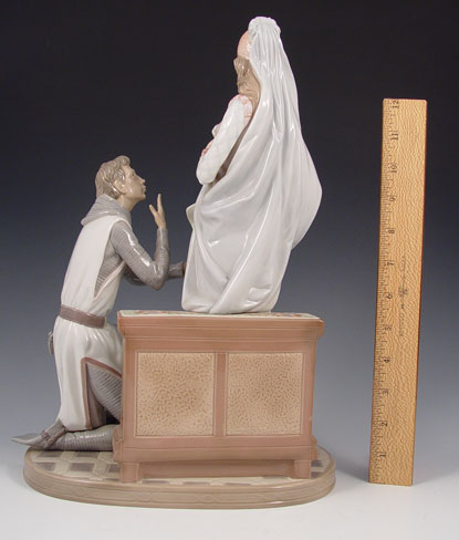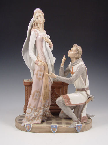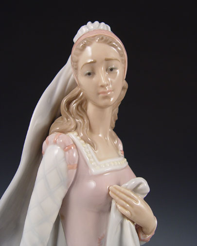 LLADRO PORCELAIN CAMELOT 1458: Limited edition of 3000, retired in 1994. Sculptor Salvador Furio. 15'' tall. Please note loss of her finger.