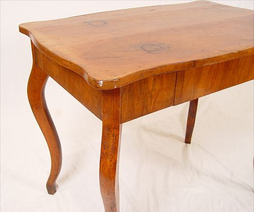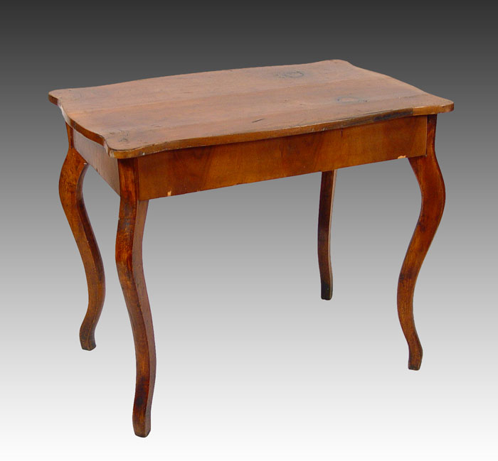 BIEDERMEIER LAMP TABLE: One drawer scroll top table with cabriole legs, 30 3/4''h., 36'' x 23''. Provenance- From the Collection of Otto Koloman Wagner, renowned Austrian architect, descending through the family.