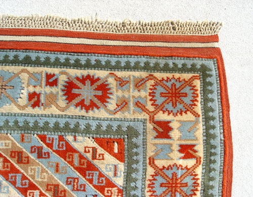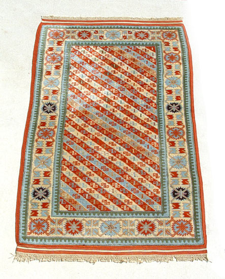 HAND TIED ESTATE CARPET: Approx. 4' x 6' 6''. Geometric design, possibly Turkish.