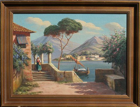 CAPRINO, G., (Italian, 20 th C.): Bay of Naples scene, OIL/Board, 20'' x 28'', signed, gold frame, 25'' x 23''. Est. $500/800**