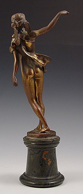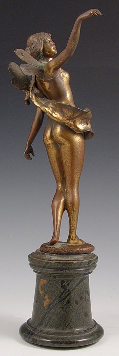 KOWALCZEWSKI, Paul Ludwig, (Polish, 1865-1910): Fairy/Pixie, Bronze, 8 1/4''h., signed, affixed to marble plinth, approx. 3''h. Est. $800/1200**