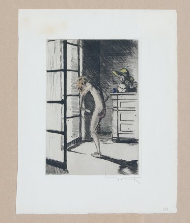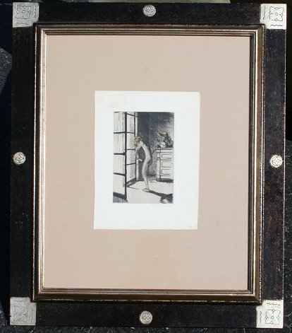 ICART, Louis, (French, 1880-1950): L'Ingenue Libertine Suite Editions Excelsior Paris 1926 printed in a limited edition of 551, Etching, 12 1/2'' x 10'', pencil signed lower right, 10 bottom right corner, float mounted in custom painted and carved frame, 30'' x 26''. Est. $200/400**