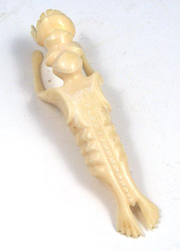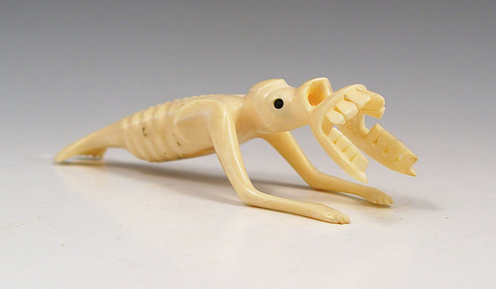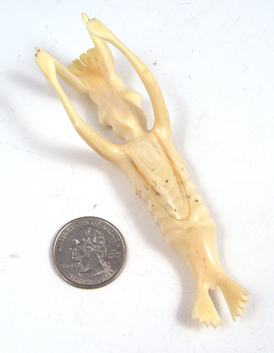 CARVED GREENLAND INUIT TUPILAK WHALE BONE: 20th century figural walrus. Measures 4 3/8'' long. Tupilaks were carved mythical, magical creatures carved by Greenland Inuit peoples for protection and shamanism.