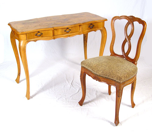 ITALIAN DESK AND CHAIR: Desk measures 30 1/2'' high x 42 1/2'' x 21''. Chair measures 35 1/2'' high x 19 1/2'' x 19''.