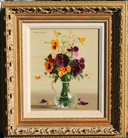 ANTONELLI, Piero, (Italian, 1916-1990): ''Pansies'', Oil/Masonite, 12'' x 10'', signed, titled verso, carved frame, 19'' x 17''.