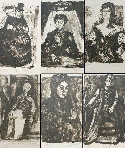 BLATAS, Arbit, (Lithuanian, 1908-1999): Suite of 6 Lithographs. Depicting various figures, sight size 18'' x 10'', pencil signed, numbered 68/200, all encased in matching frames, 24'' x 16'', with minor wear. From the Reeves Lewenthal Collection.