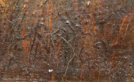 CONDITION: Stretcher wear, some paint flaking, needs cleaning.