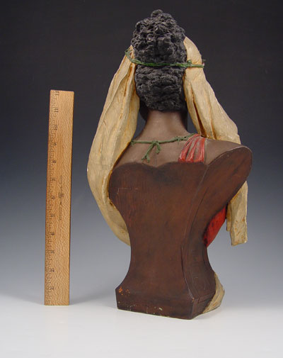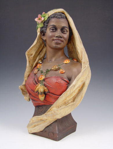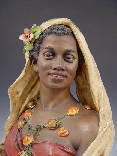 ORIENTALIST / BLACKAMOOR CERAMIC BUST: Nicely detailed from the flower in her hair to the shell necklace. 15'' tall.