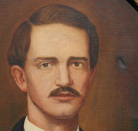 WALLER, Johannes, (American, 1903-1945): Portrait of Abner Patton, Founding Father of Sigma Alpha Epsilon SAE fraternity, OIL/Canvas, 24'' x 20'', signed and dated 1938, embossed, gilded and carved frame with oval insert and minor wear, 26'' x 22''.