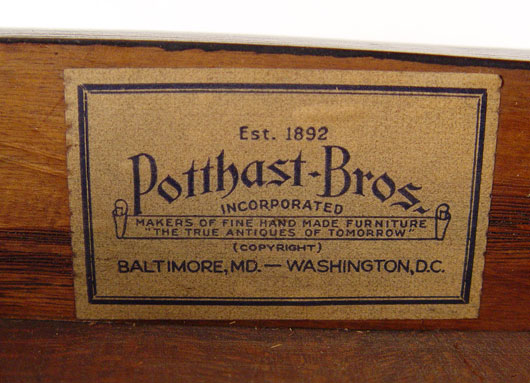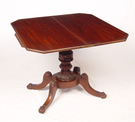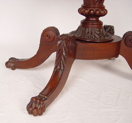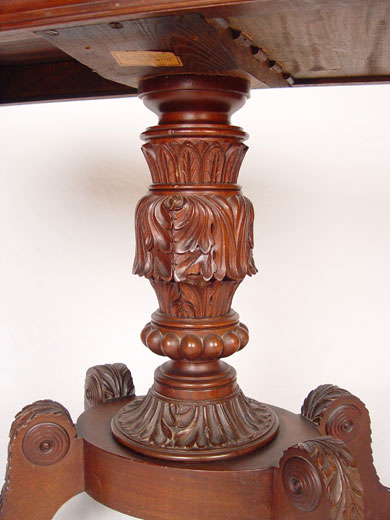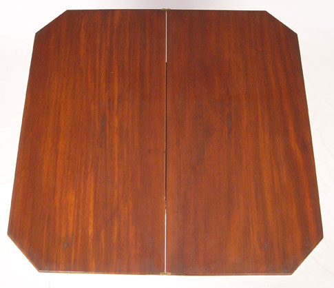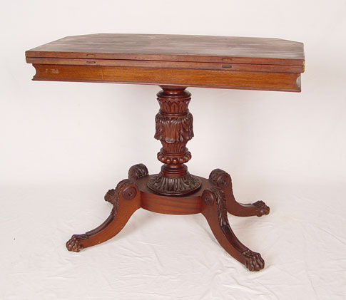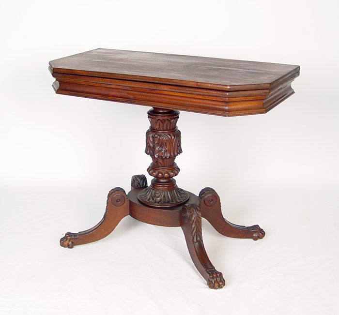 POTTHAST BROS. FINELY CARVED MAHOGANY FEDERAL STYLE GAME TABLE: Measures 29 1/4'' high x 35 1/4'' x 17 1/2'' closed.