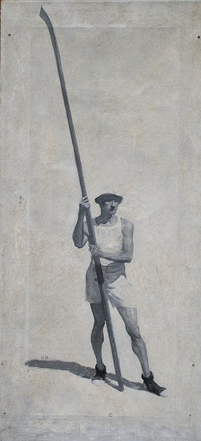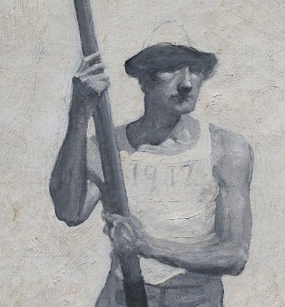 HOWLAND, Hawthorne, (American, 20th Century): ''The Man Who Makes the Beat'', illustration for Scribner's Magazine for article ''Rowing of American Universities'', published in 1916. 26'' x 12'' unframed, Scrib. label verso.
