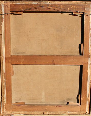 CONDITION: Has old re-line, scattered in-paint throughout, repaired punctures and discolored varnish.