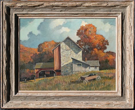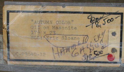 SLOANE, Eric, (American, 1910-1985): ''Autumn Color'', OIL/Masonite, 17 1/4'' x 23'', signed, encased in Barnwood style frame, 25'' x 30 1/2'', older gallery label verso. From the Reeves Lewenthal Collection.