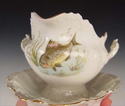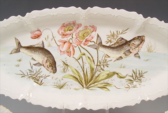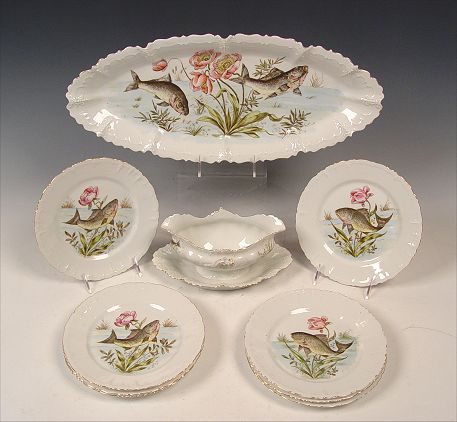 10 PIECE FINE PORCELAIN FISH SET: To include 21'' platter, 10'' sauce boat and 8 plates, 8 1/2'' dia.