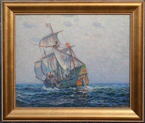 TYLER, James Gale, (American, 1855-1931): ''Ship under Full Sail'', OIL/C, 25'' x 32'', signed lower right, dated 1916, gilded frame, 33'' x 40''.