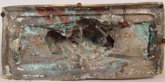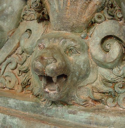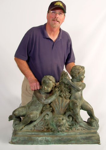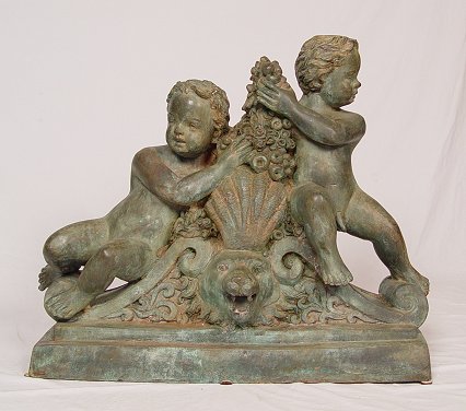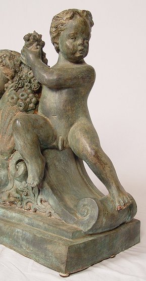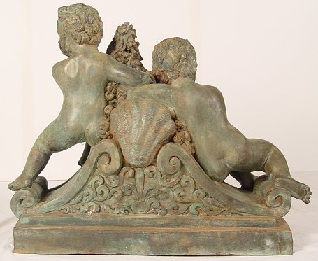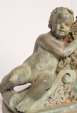 LARGE BRONZE CHERUB GARDEN SCULPTURE / FOUNTAIN: 27'' h. x 33 1/2'' l.
