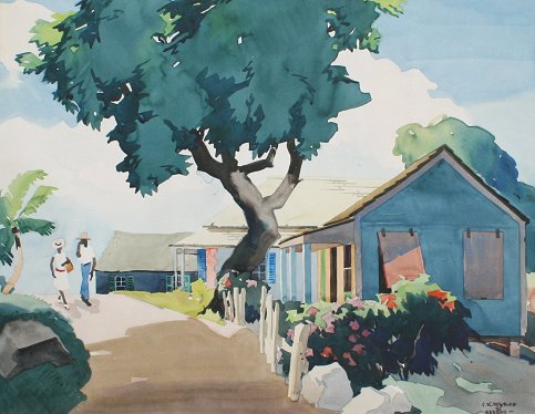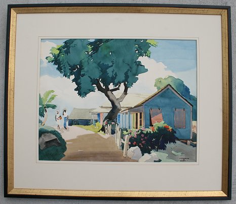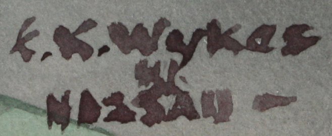 WYKES, Frederic Kirtland, (American, 1905-): ''Nassau, Bahamas'', '41, W/C, 15 1/4'' x 19 1/2'',signed and dated, ebonized and gilt frame with no glass 24 1/2'' x 28 1/2''. Wykes exhibited at the Society of Independent Artists and the Art Institute of Chicago.
