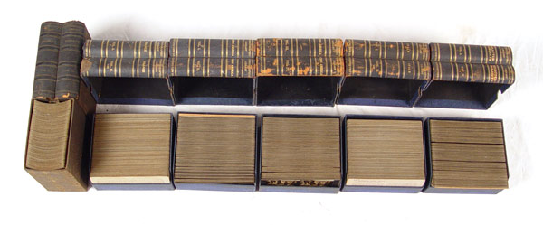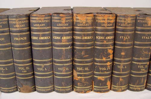 KEYSTONE STEREOVIEW STEREOGRAPHIC LIBRARY CARDS IN BOXES: 6 boxes in book form to include Primary Vol. 1 & 2, Scenic America Vol. 1 & 2, 3 & 4, Italy Vol. 1 & 2, Selected Subjects Vol. 1 & 2, France Vol. 1 & 2. Boxes appear to be full or nearly full, many cards have switched from appropriate box over time. We cannot guarantee each set is complete. Please note box condition.