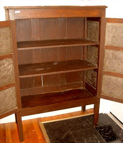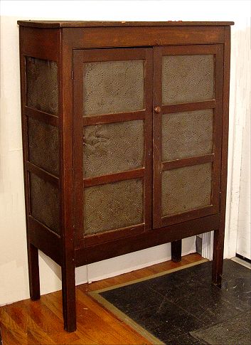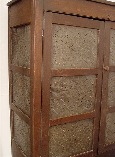 AMERICAN COUNTRY PUNCHED TIN PIE SAFE CA. 1880: All original punched tin panels. Measures 56'' high x 38 7/8'' wide x 16 3/4'' deep.