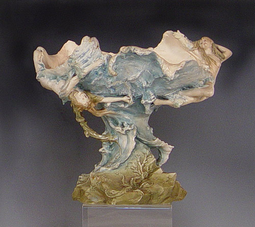 BISQUE CLEMENT MASSIER STYLE MERMAID & SEA LIFE COMPOTE: The base swimming with mermaids, fish, coral, and octopus. Evidence of restoration and repaint. Measures 9 1/2'' high x 11 3/4'' x 9 1/2''