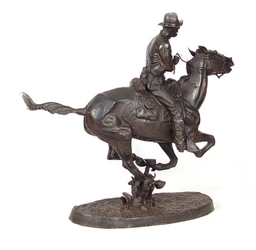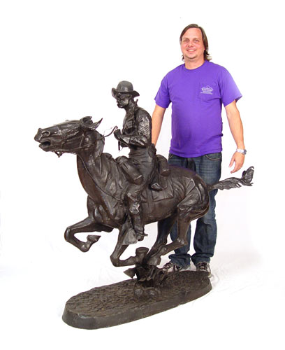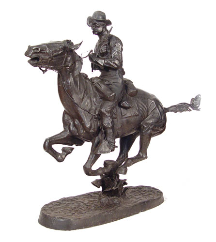 LARGE REMINGTON STATUE: Modern interpretation. 53'' high x 60'' x 17 1/2''.
