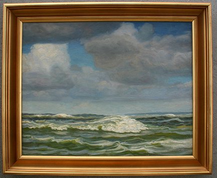 HELSTED, Viggo, (Danish, 1861-1926): Seascape, O/C, 19 1/2'' x 24 1/2'', signed, titled illegibly verso, gilded frame with wear, 24'' x 29''.