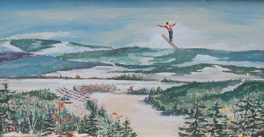 HEAD, John Loren, (American, 1913-1997): Ski Jump Competition, W/C and Gouache, 7 1/2'' x 13'' sight size, signed lower right, encased in contemporary gilded molding, 16'' x 21 1/2''.