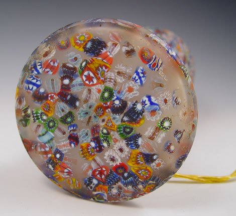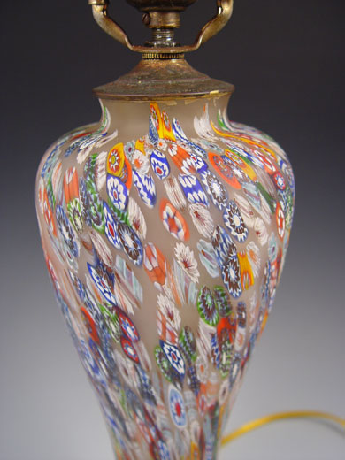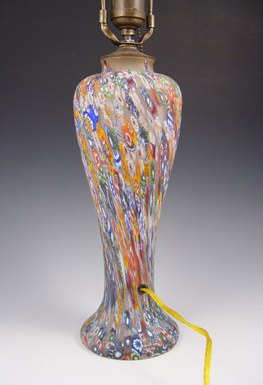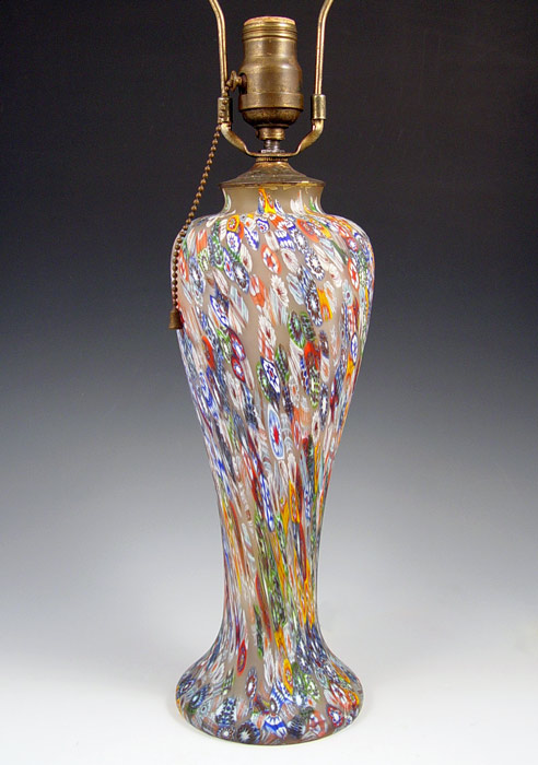 MILLIFIORI GLASS LAMP: Large vasiform base, the glass portion is 12 3/4''h. Single socket, pull chain.