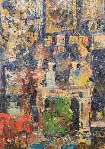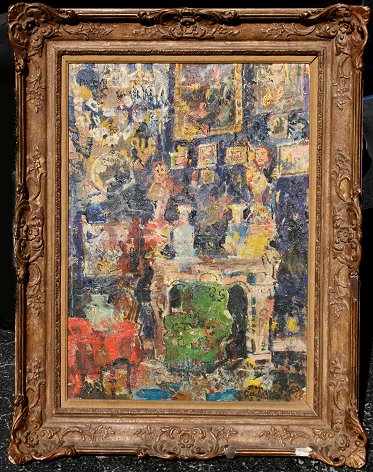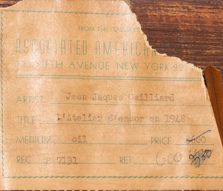 GAILLIARD, Jean Jacques, (Belgian, 1890-1976): ''L'Atelier d'Ensor en 1948'', OIL/Canvas, 28'' x 19 1/2'', signed and dated lower right, signed and titled on the stretcher verso, Associated American Artist label verso, encased in original carved and gilded frame with damage, 36'' x 28''. From the Reeves Lewenthal Collection.