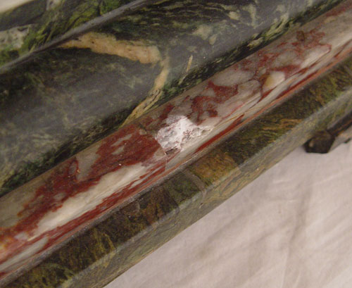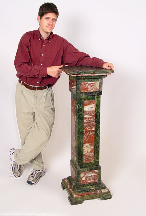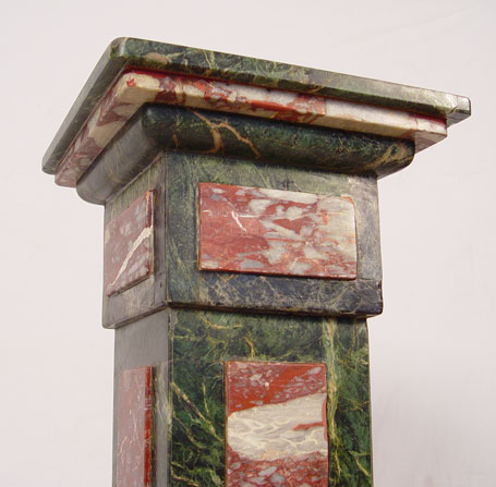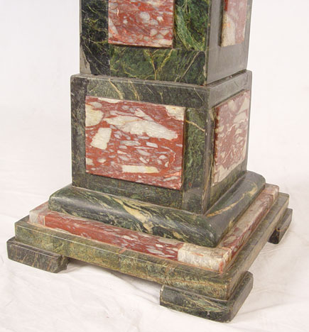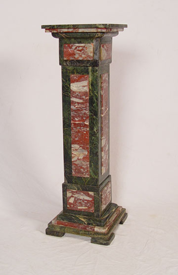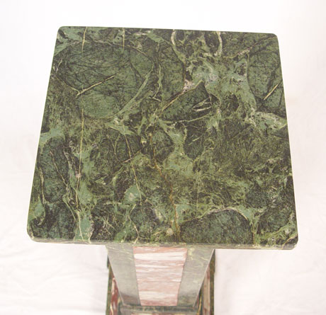 UNUSUAL TWO TONE GREEN & PINK MARBLE PEDESTAL STAND: 48'' tall