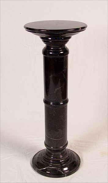 POLISHED BLACK MARBLE PEDESTAL: Measures 35 1/2'' high x 13 1/2'' dia. Note one small chip on base.