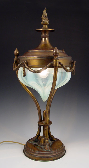 ART DECO OPALESCENT GLASS SHADE LAMP: Featuring hoove legs. 22 3/4''H.