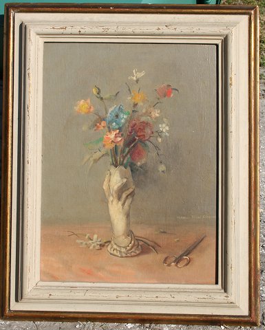 SIMPSON, Maxwell Stewart, (American, 1896-1984): ''Flowers'', Oil/Canvas Board, 16'' x 12'', signed lower right, titled verso and dated 1961, encased in gilded and painted wood frame with wear, 21'' x 17 1/2''.