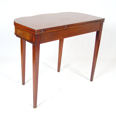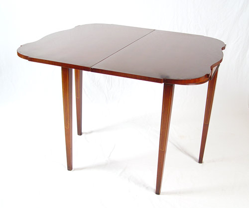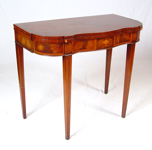 INLAY MAHOGANY GAME TABLE: Measures 30 1/2'' x 36'' x 19'' closed. Please note loss of several small pieces of veneer.
