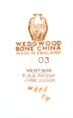 WEDGWOOD VETNOR FINE CHINA: 44 pieces to include 12 dinner plates, 8 salad plates, 8 bread plates, 8 cream soups and 8 underplates.