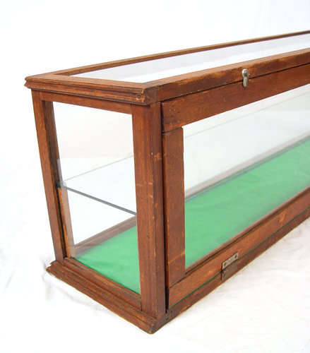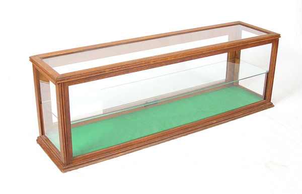 AMESBURY OAK DISPLAY CASE: Hinged back access. Made in St. Petersburg FL. Measures 16'' high x 47 1/2'' x 12''