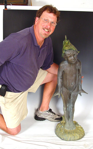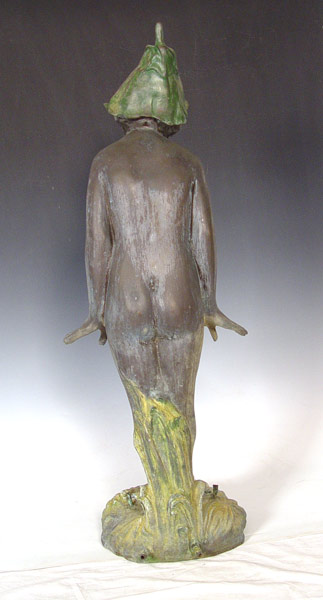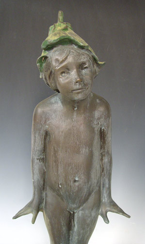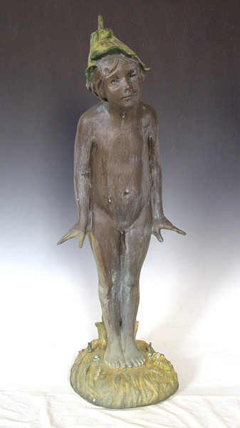 BRONZE FIGURAL FOUNTAIN OF CHILD NYMPH: With hands in anticipation of the water. You will need to furnish the hardware. Measures 39 1/2'' h x 11 1/2'' dia base.